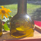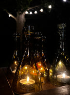 For tealight use, avoid lifting by the neck of the wine bottle, as the glass may become hot and cause injury. To extinguish the flame or move the piece, gently lift from the lower portion of the bottle.